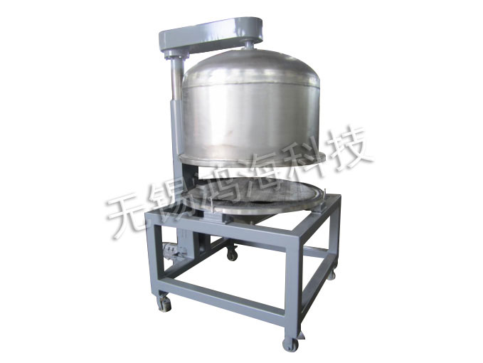 該機器是一種間歇式操作的加壓過濾、脫水設備,固相回收率高,能將小于1微米的細小顆粒分離出來,料漿損失少。筒體及與物料解除部分全為不銹鋼制作,不污染物料。側置的手搖升降裝置,設計為人性化,操作簡單、方便易于清洗。筒體可作360度的大回轉,維護及出料為便利。